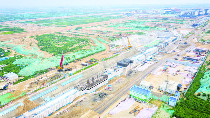 航拍启动区A组市政管廊项目建设现场。 见习记者 李泽凯