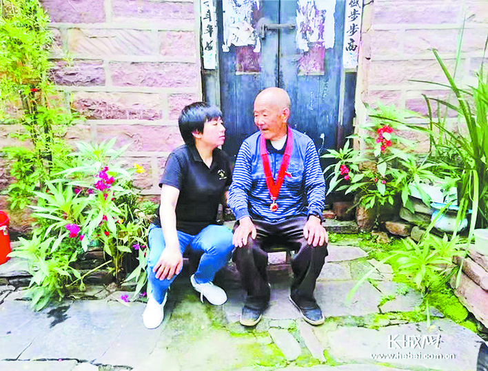 李瑞芳(左)到抗大旧址寻访,听抗大老房东口述历史。