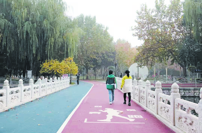 “世纪公园是民心河改造提升的一个重要节点,是串联的公园(广场)之一,这里原本是水泥路面,经过改造提升后,变为双色的彩色沥青路面,与周边景观更加协调匹配,经过对步道的提升改造,吸引了更多市民来这里游玩、锻炼。”市城发投党委委员、总经济师孙俊梅向记者介绍道,“民心河步道贯通工程于今年9月30日全面开工,我们仅用1个月时间实现了民心步道全线贯通,提升了民心河沿岸环境,增添了市民的获得感、幸福感。”