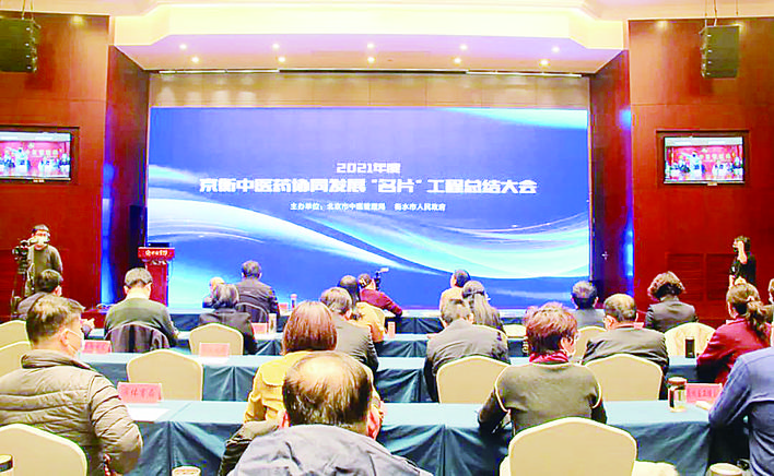 近日,由北京市中医管理局、衡水市政府共同主办的2021年度京衡中医药协同发展“名片”工程总结大会,采取线上线下相融合模式,在北京、衡水两地同时召开,共商京衡两地中医药发展大计。图为会议现场。卢婉凤 摄