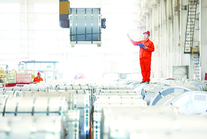 河钢衡板公司职工在吊运马口铁产品。