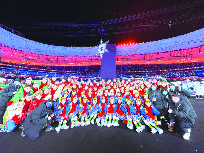 “冬奥会开幕式仪式前表演,我们的学生站在了鸟巢中的‘C位’。看到这一刻,我们觉得一切都值了。”该校艺术学院院长仲莉华对记者说。