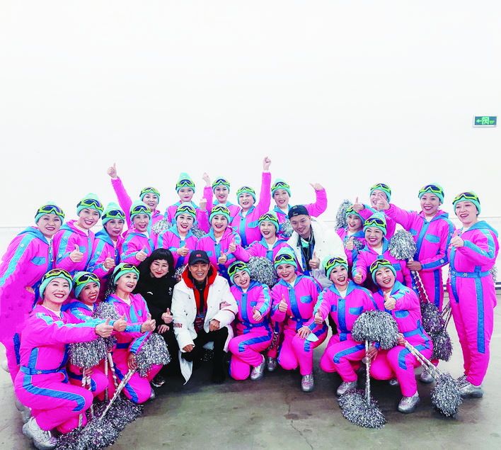 冬奥会开幕式总导演张艺谋与舞蹈队队员合影留念。 张家口市群众艺术馆舞蹈队 供图