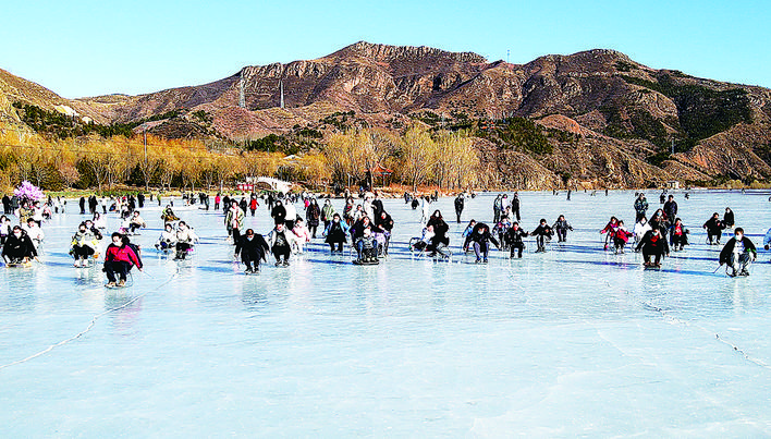 近日,赤城县利用白河湾大面积冰面,组织开展全民上冰运动。众多冰雪运动爱好者在冰上一展风采,比赛不断,精彩连连。 李瑞云 摄