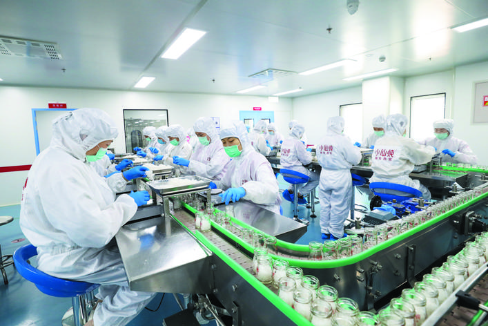 小仙炖霸州食品有限公司生产车间内,工作人员在灌装产品。