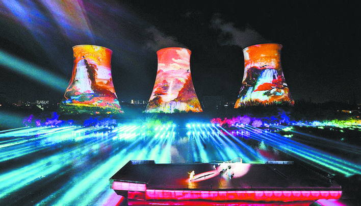 “蝶恋花”文旅项目以洋河河谷为依托,一期工程于2018年竣工,建成高塔激光秀、商业街、电影院、酒店等。给世人留下印象最深的是高塔激光秀——《梦回下花园》,激光投影在发电厂百米冷却水塔和幻彩水面舞台,上演一场兼具美感、历史感和科技感的激光秀。