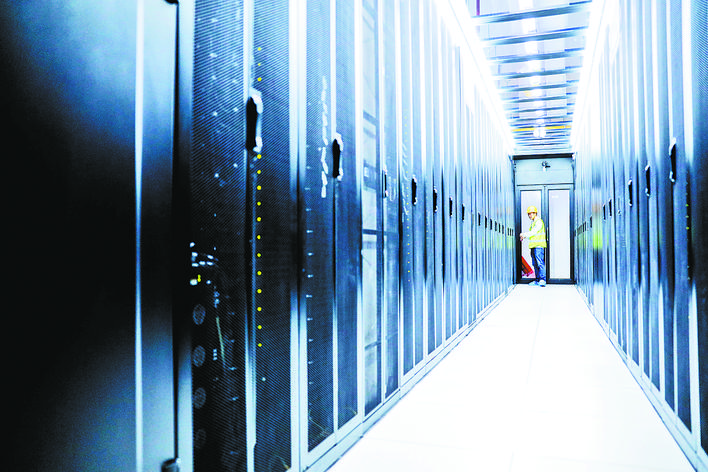 西部云基地国家(中卫)数据中心中国联通数据中心机房(3月1日摄)。