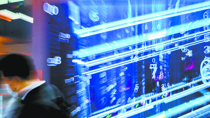 工作人员在位于贵州贵安新区的中国移动贵州数据中心机房内巡检(2021年5月24日摄)。