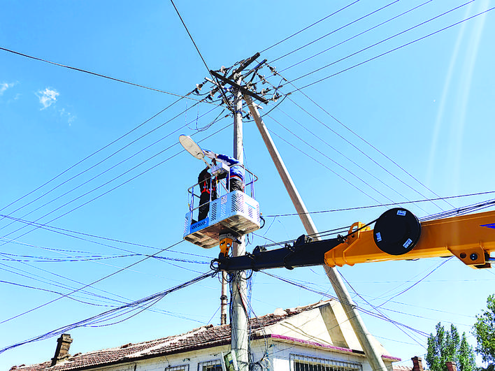 张北县交通运输局协调技术人员为西关街社区安装路灯。倪鹏 摄