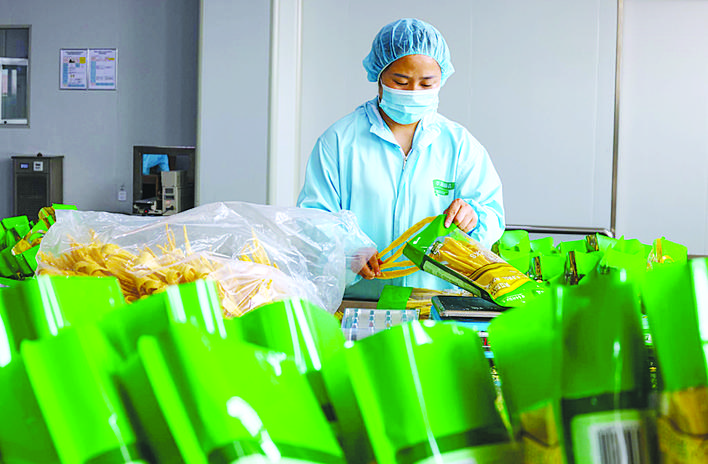新华区大力发展农产品加工产业,通过农业龙头企业提高特色农产品加工转化率,完善产业链条,解决农产品销路问题,促进农民增收。各农产品加工企业在全力做好常态化疫情防控的前提下,按下生产“快进键”,赶制订单。图为沧州市华海顺达粮油调料有限公司员工在抓紧生产。记者 代晴 通讯员 张军 张子衡 摄