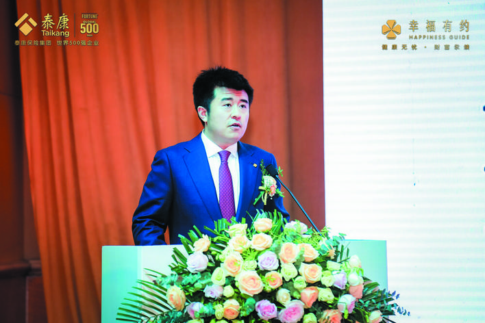 ▲泰康大健康生态投资报告会在石举办,陈奕伦作报告。