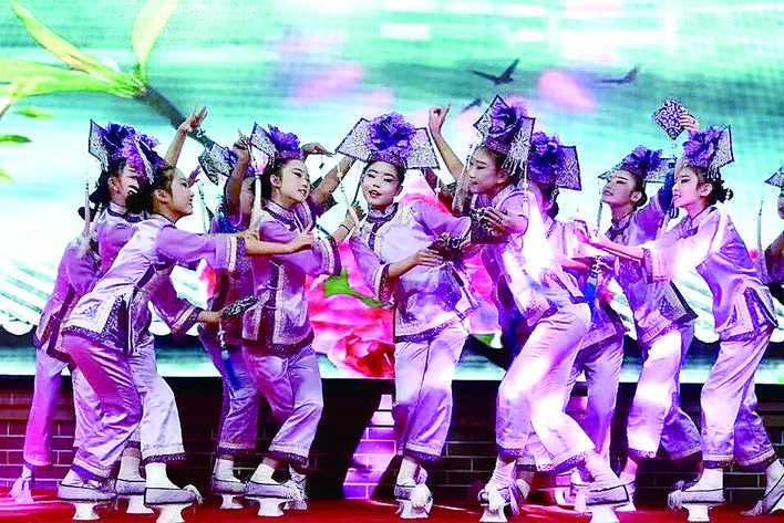 丰宁满族自治县第二小学音乐教师王晓伟创排的满族舞蹈《满乡荷包情》,挖掘满族民俗文化中“荷包”的深意和内涵,用舞蹈艺术形式加以表现,并将这一舞蹈引入校园排练展演,让民族文化之花常开常艳、香满校园。图为展演现场。刘海波 刘嵩晨 摄