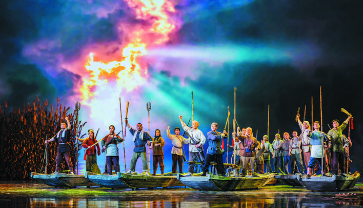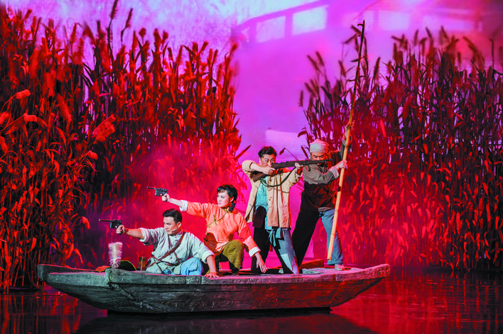 歌剧《雁翎队》取材自抗日战争时期有“淀上神兵”之称的河北白洋淀抗日武装队伍“雁翎队”的战斗故事,讲述了八路军战士张淀生受命回家乡白洋淀发动群众,组建水上游击队,封锁日寇水上运输线,英勇战斗的传奇故事。演员对人物心理活动的精准把握,很快就能让观众沉浸在剧情之中,唤起红色记忆。