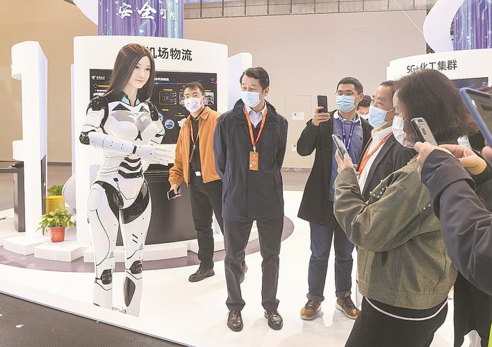 11月20日,参观者在与一款高仿人机器人互动。当日,2022中国5G+工业互联网大会在武汉开幕。大会以“数融万物,智创未来”为主题,期间将举办20场分论坛和多场特色活动,涉及应用、技术、网络、平台、安全、产业等多个层面,同时举办“2022中国5G+工业互联网”成果展,展示最新发展成果。 新华社记者 程敏 摄