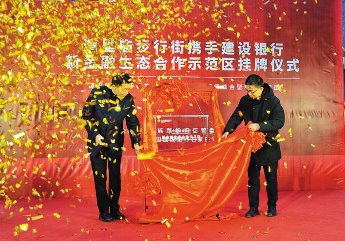 建行石家庄分行携手湾里庙举办“新金融生态合作示范区”挂牌仪式。