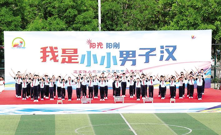 5月15日上午,沧州市迎宾路小学第十届男孩节正式启幕。在三天的时间里,学校举行了庆典仪式、“男生十岁成长礼”“团队合作”游戏等活动,让每一个男生参与其中。图为庆典仪式上,男孩们带来诗朗诵《我是迎宾少儿郎》。代晴 摄