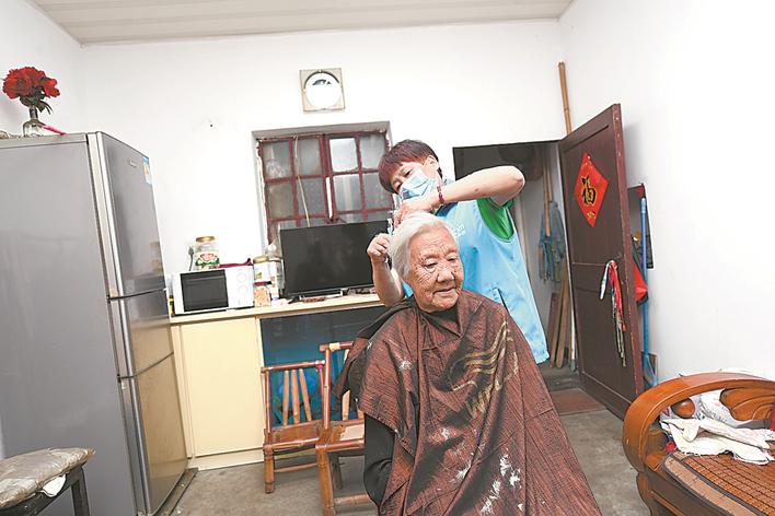 5月30日,湖州市志愿者上门给上强社区的老年人免费理发。