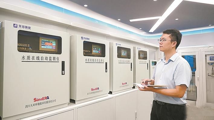 梁昊宇在监测站了解实时数据。 记者 马宁 摄