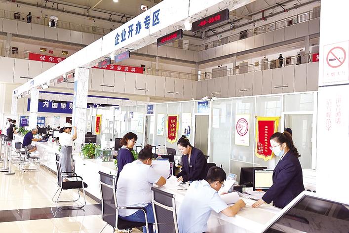景县政务服务中心大厅开设的企业开办专区。高雷 摄