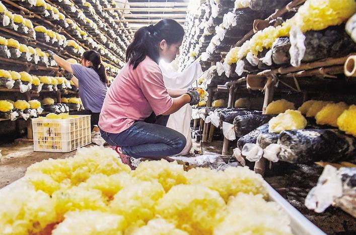 近日,在广平县胜营镇银耳种植集体经济示范基地,120座大棚银耳先后成熟,村民正忙着采收,一派丰收景象。武小凯 摄
