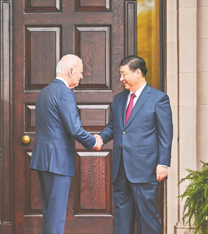 当地时间11月15日,国家主席习近平在美国旧金山斐洛里庄园同美国总统拜登举行中美元首会晤。新华社记者 饶爱民 摄
