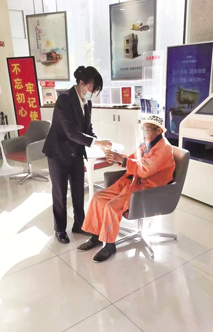 为响应省行开展第十四届“爱心日”活动号召,工行霸州支行利用“工行·小青星驿站”为到店环卫工人提供便民暖心服务。工作人员为环卫工人送上毛巾、茶杯、雨伞等物品,并提供地方休息和温水饮用。徐璇 摄