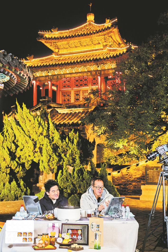 东方小孙(右)、主播明明在正定直播推荐河北好物。 记者 许付磊 摄
