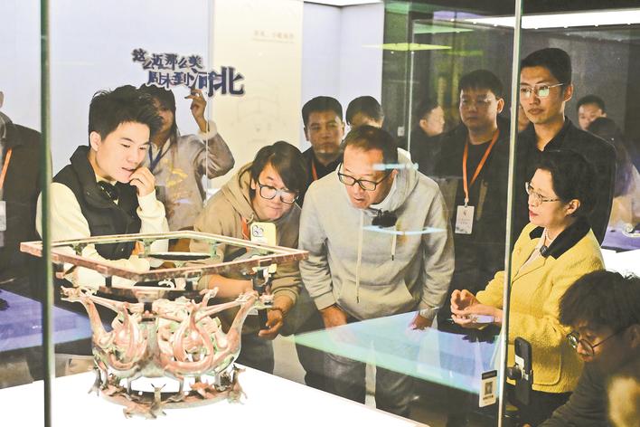 俞敏洪(左三)和董宇辉(左一)参观河北博物院。记者 许付磊 摄
