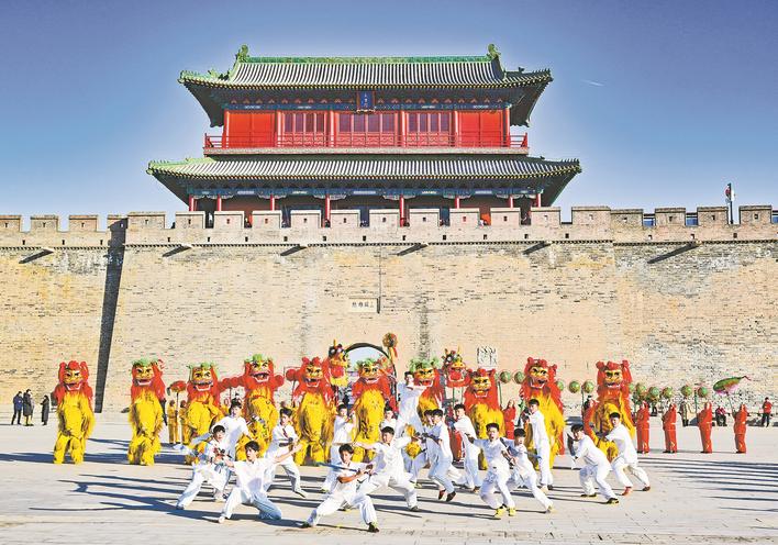 正定直播现场上演了常山战鼓、清苑绣球龙灯、徐水舞狮、沧州武术等文化表演。记者 许付磊 摄