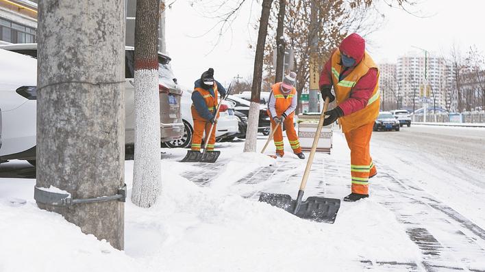 近日,河北省经历新一轮降雪。各地环卫、电力、交通、供暖等一线劳动者坚守“在线”。他们不畏严寒,或及时清雪,或冒雪巡检,或增加蔬菜收储……保障生产生活正常运转,让百姓感受到身暖、心暖。