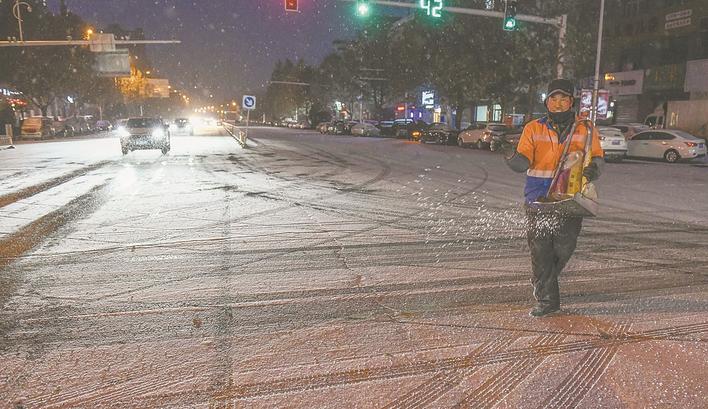 工人在遵化市城区道路进行融雪作业。刘满仓 摄