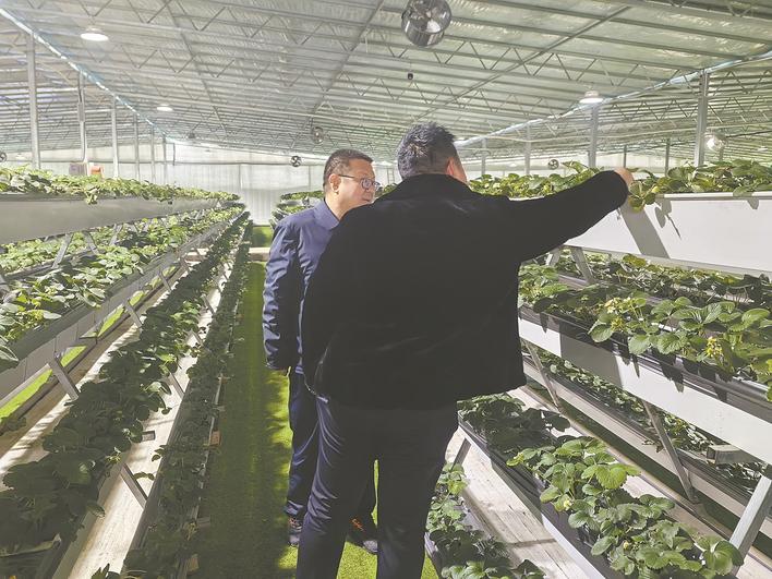 在“鲜蔬小镇”魏县德政镇后西营村,农技人员指导农户做好大棚防范大雪措施。通讯员 王德峰 摄