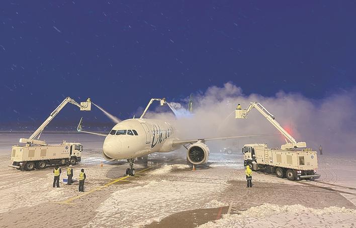 12月14日,石家庄机场在保障跑道、滑行道除冰雪的同时,同步开展机坪除雪工作。石家庄机场 周雨供图