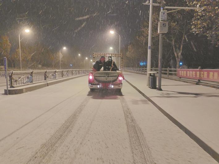 廊坊安次区环境卫生事务中心组织工人在进行融雪作业。安次区环境卫生事务中心 供图