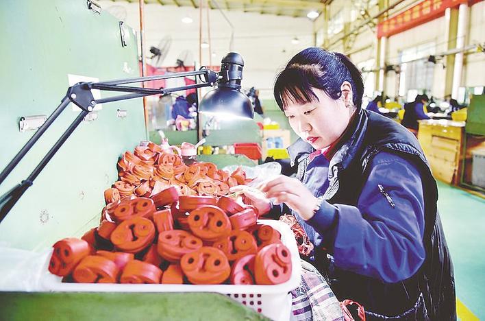 任泽区一家特种橡胶制品有限公司工作人员正在车间作业。邱洪生 摄