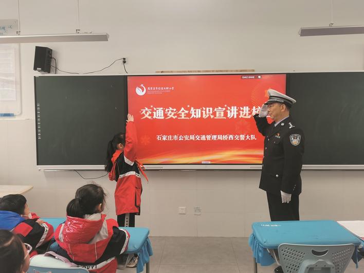 为加强学生道路交通安全宣传教育,近日,石家庄市友谊大街小学开展了交通安全知识进校园活动,为学生普及交通安全知识,增强广大师生交通安全意识和法律意识。王建东 武洁 摄