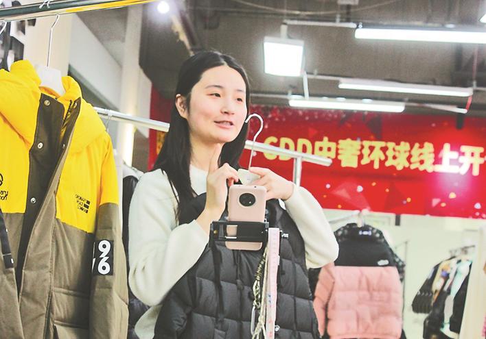 石家庄网上年货节启动仪式活动现场,主播正在直播售货。 本报记者 郑建卫 摄