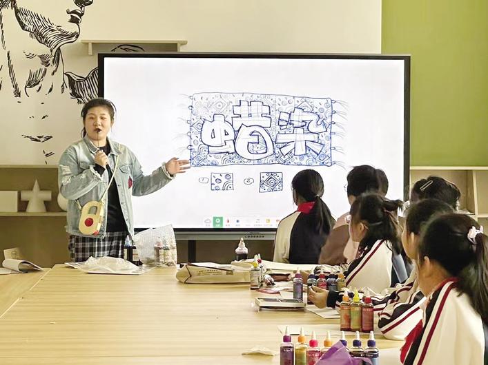 邯郸经开区实验小学为全面落实五育并举,开设“学科类”+“艺术类”等两大类60多个社团课程,开展丰富多彩的社团活动,学生课后服务精彩纷呈。图为老师为学生们讲解蜡染工艺。 长城网·冀云客户端记者 韩晓寒 摄