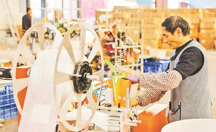 在昆明斗南花卉市场,电商发货仓工人对鲜切花进行保湿处理。 图片均为新华社发