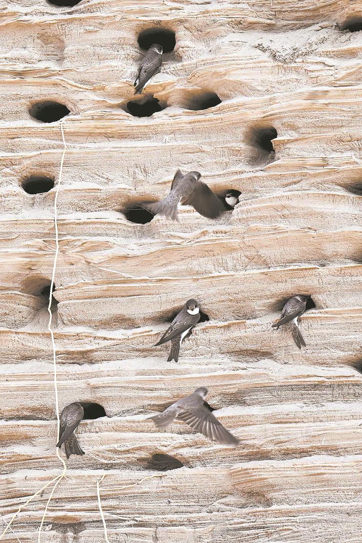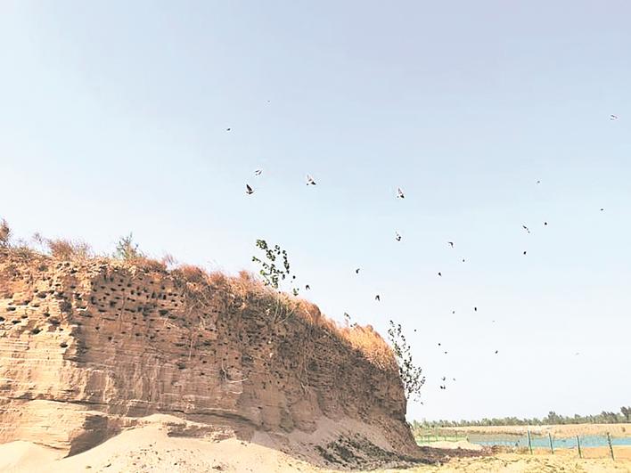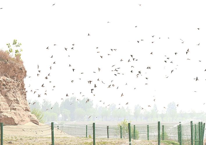 “今年3月,这个沙岛又重新进行了修复,施工队用钩机把沙岛铲成垂直角度,这样更利于崖沙燕在这里筑巢繁殖。”邢世杰说,“飞进飞出的崖沙燕正是沙岛修整后迎来的第一批燕子,大概有一万只左右,到‘五一’前后数量会达到顶峰,估计有三四万只。”
