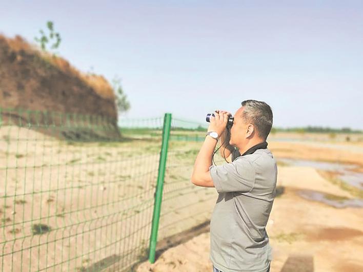 志愿者邢世杰观察崖沙燕筑巢情况。长城网·冀云客户端记者 许艳艳 摄