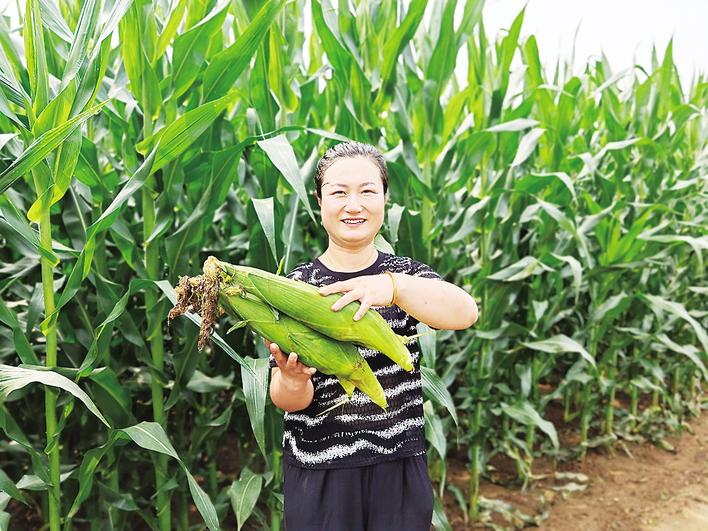 时下,迁西县太平寨镇马家峪村的水果玉米种植基地迎来大丰收,工人们忙着采摘,现场一派繁忙景象。近年来,迁西县充分发挥本地农业资源优势,因地制宜培育特色产业,扶持种粮大户开展集约化、产业化种植,不断拓宽农民增收致富渠道。图为农户展示水果玉米。赵志鹏 周立敏 沈宇晴 摄