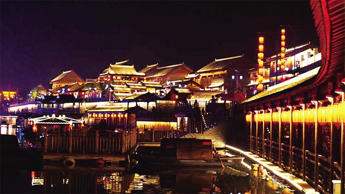 滏阳河磁县段的开河马头景区是以漕运文化为载体,集文化、旅游、购物、民宿等多元业态于一体的景区。到了晚上,开河马头灯光璀璨、流光溢彩、如梦如幻,夜晚的霓虹灯让这里的一切变得妩媚灿烂,让人感受到美妙震撼的视觉盛宴。古香古色的建筑,黄色的灯光搭配上火红的灯笼,让人仿佛置身于北宋,堪称滏阳河上的“清明上河图”,美丽的夜景吸引了众多游客来这里游玩赏景,这里成为各地游客网红打卡地。