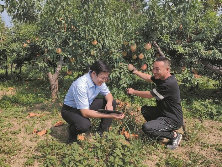 建行赞皇支行客户经理走访寿桃种植户了解种植情况。