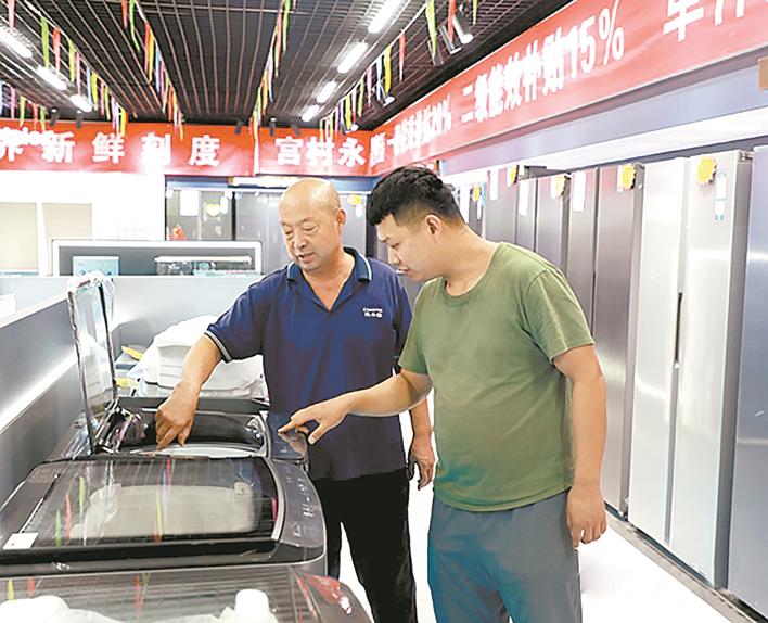 在固安县宫村镇永昌电器内,店员在为顾客介绍产品。通讯员 任涵 摄