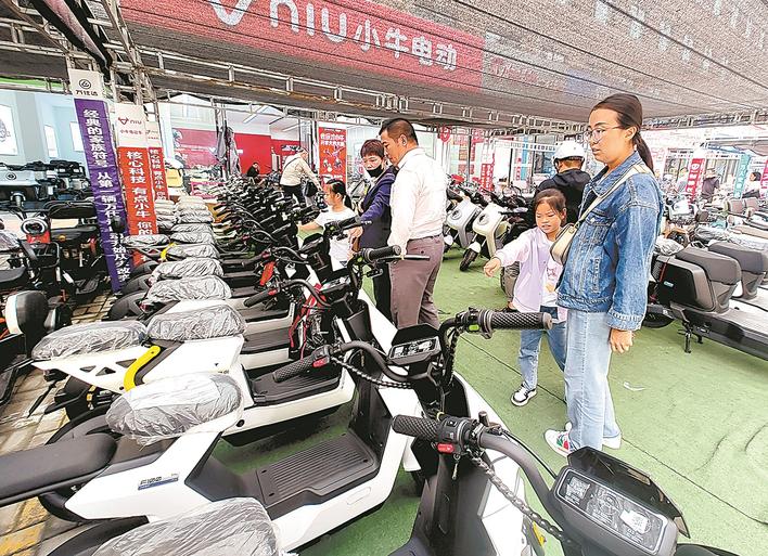 “你瞧,旁边停放的20多辆旧车都是今天车主骑过来以旧换新的,资料已经上传了,就等着补贴核准下发。”店主说,像这辆2499元的新车,以旧换新补贴20%,旧车抵300元,到手也就1700元上下。