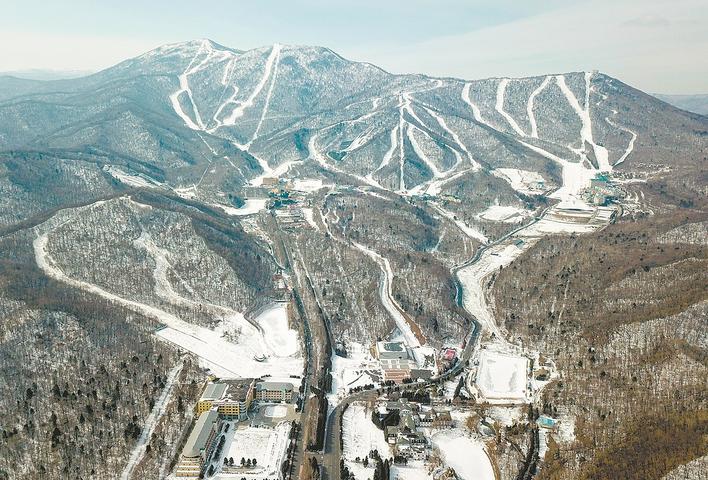 这是2024年3月7日拍摄的雪道遍布的亚布力滑雪旅游度假区(无人机照片)。新华社发