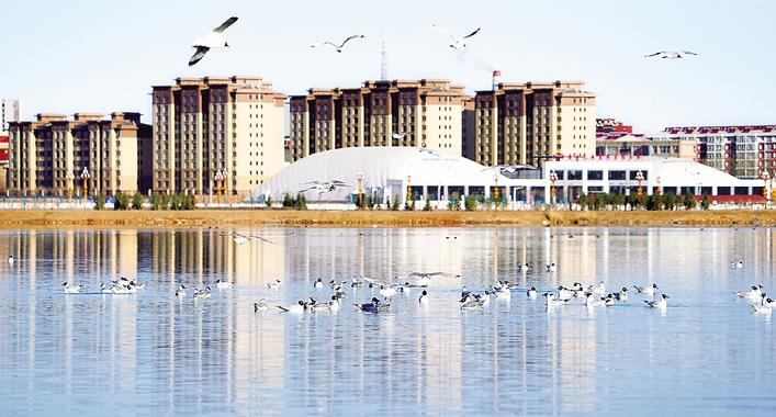 康巴诺尔湿地公园水光潋滟鸥鹭翔集。温利 摄
