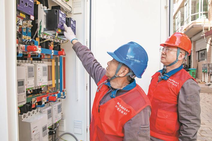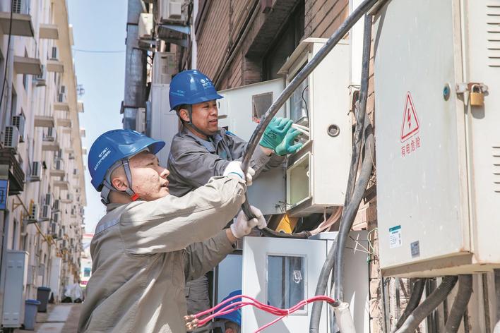 ②秦皇岛供电公司员工在秦皇岛市北戴河区刘庄北里民宿区装表接线。