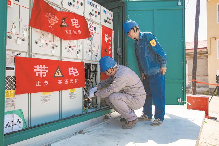③秦皇岛供电公司施工人员对秦皇岛市北戴河区崔各庄村新建箱开进行检查。史文全 摄
